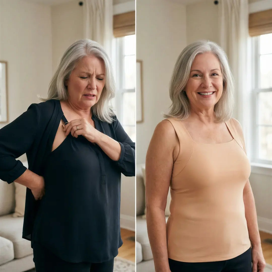 Most women have spent decades putting up with wires, tight bands, and bra lines. This tank has a front-only support panel that lifts and shapes — with nothing wrapping around your back at all.